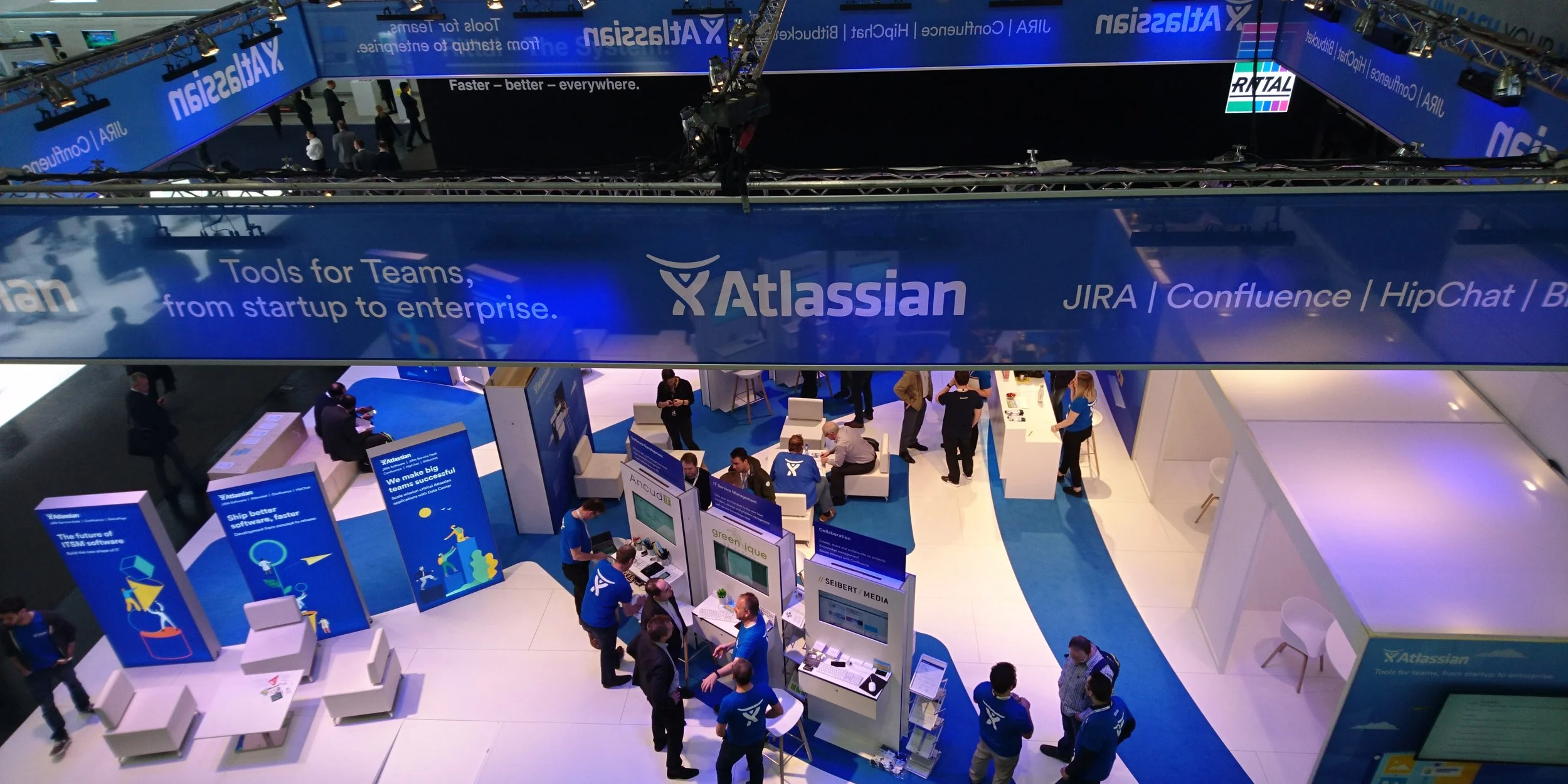 Reflecting Atlassian’s team-first philosophy through tradeshow booth design, signage, and graphics.